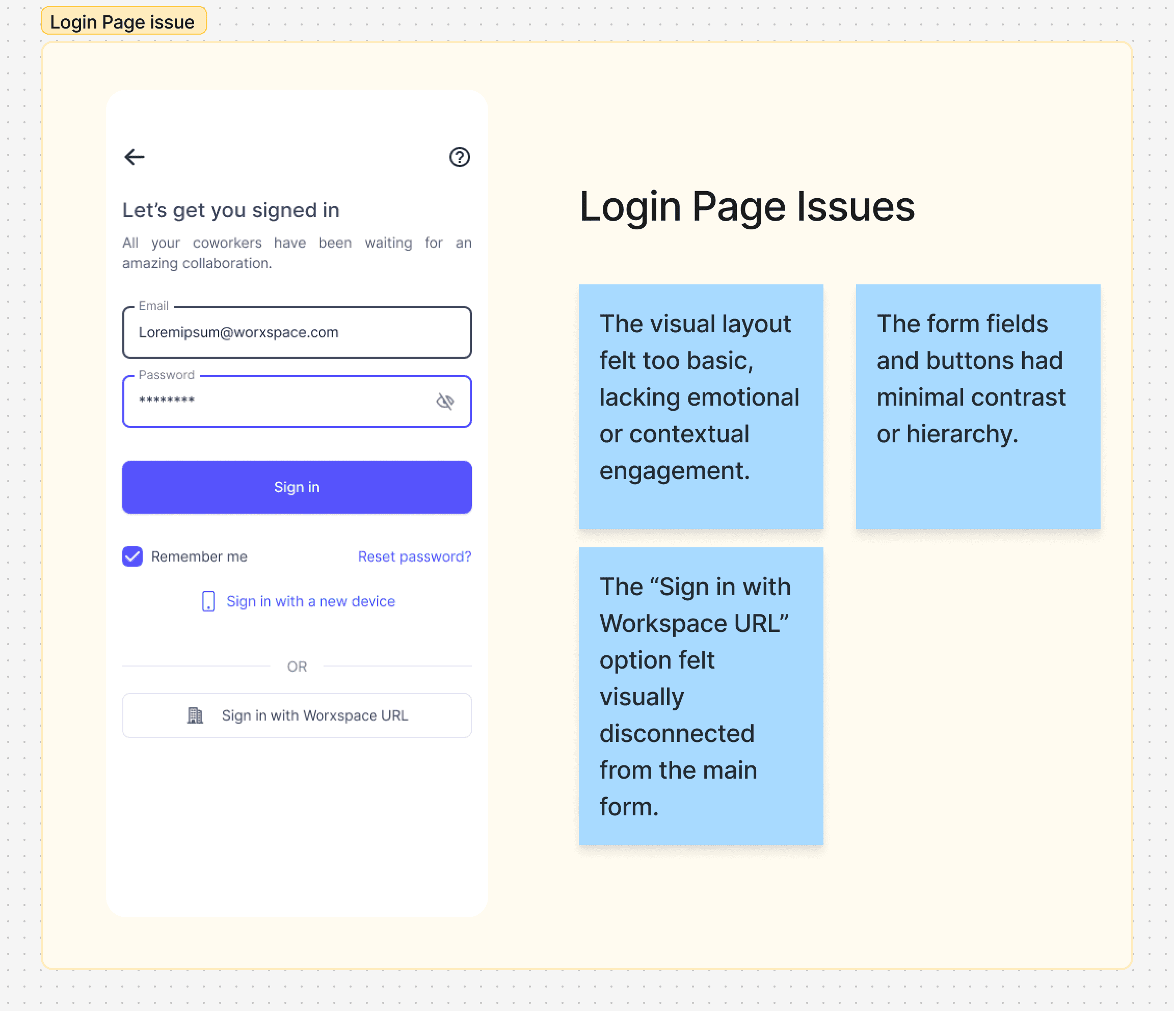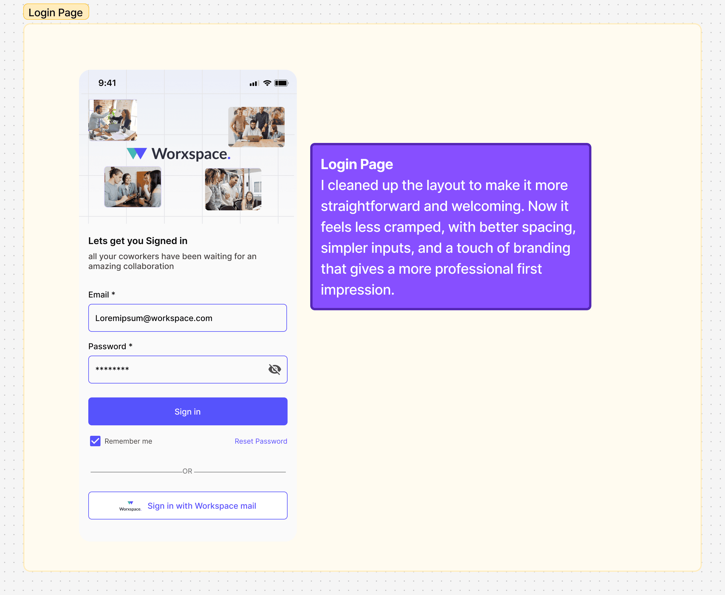 After spotting a few pain points in the original design—like cluttered layouts and unclear visual hierarchy—I gave the Worxspace app a fresh new look. I focused on three main areas: the Login page, Home page, and Task management flow (List, Detail, and Create screens).